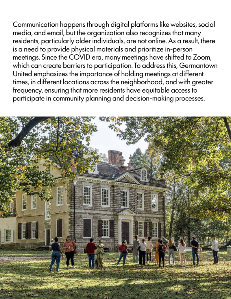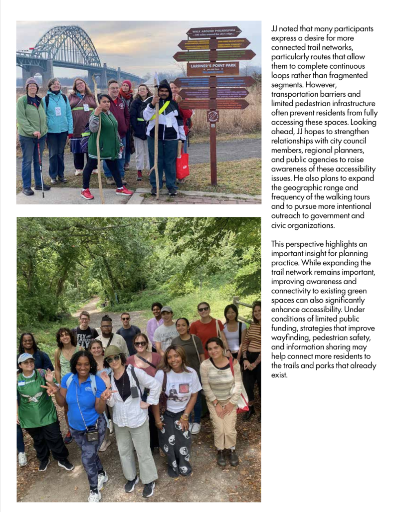 This report examines how existing planning frameworks, community leadership, and institutional processes can better support equitable access to green space in historically underinvested neighborhoods. Specifically, it evaluates opportunities within the Philadelphia 2035 framework to reconnect residents to existing green space and to identify strategic locations for new investments in areas characterized by low mobility and past disinvestment.